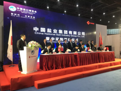 中鹽集團黨委書記、董事長李耀強在中鹽交易分團簽約儀式動員會上強調,“中鹽集團要深刻學習貫徹落實習主席在首屆中國國際進口博覽會開幕式上的重要主旨講話精神,要在國務院國資委的堅強領導下,堅持對外開放、擴大發展,要充分體現改革不停頓、開放不止步的堅定信心和決心。歷史證明,我們必須堅持改革開放的道路,加強與國際化一流企業的交流合作,拓展國際化視野,通過對外開放、互利互惠等一系列舉措,推動企業高質量發展,早日實現國家鹽業公司+優秀化工企業的戰略目標。”