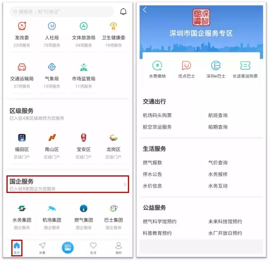 目前,首批上線服務集中于民生重點領域和高頻服務事項,共接入涉及機場集團、鹽田港、水務集團、燃氣集團、巴士集團等9家深圳市屬國企的18項服務,除市民常用的水費繳納、燃氣報數、客運購票、航空貨運等服務外,還包括科普教育預約、定制巴士、水務互動等專項服務,初步體現“國企服務專區”特色。