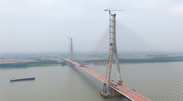 總投資31.44億元的嘉魚長江大橋,全長4.66公里,項目起于洪湖市燕窩鎮,止于嘉魚縣新街鎮,是武漢城市圈環線高速公路的跨江通道。主橋長1650米,為保證長江通航要求,大橋采用主跨920米的非對稱單側混合梁雙塔雙索面斜拉橋設計,跨徑居同類型橋梁世界第一。