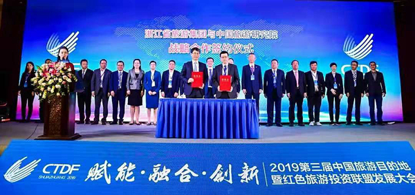 在日前舉行的2019第三屆中國旅游目的地暨紅色旅游投資聯盟發展大會上,浙江省旅游集團與中國旅游研究院簽署戰略合作框架協議,進一步加強產學研合作,促進旅游產業創新發展。