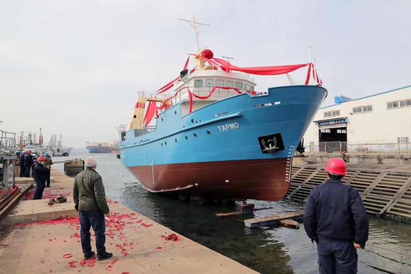 該船自去年6月份開工建造,歷經9個月的艱苦奮戰,順利完成船舶下水工作。這也是遼漁集團船舶工程分公司第二次建造該船型,通過同型號船“捷里別而卡”號的成功建造和投產使用,獲得俄羅斯船東的好評和青睞,為該船的順利建造和交船打下堅實基礎。