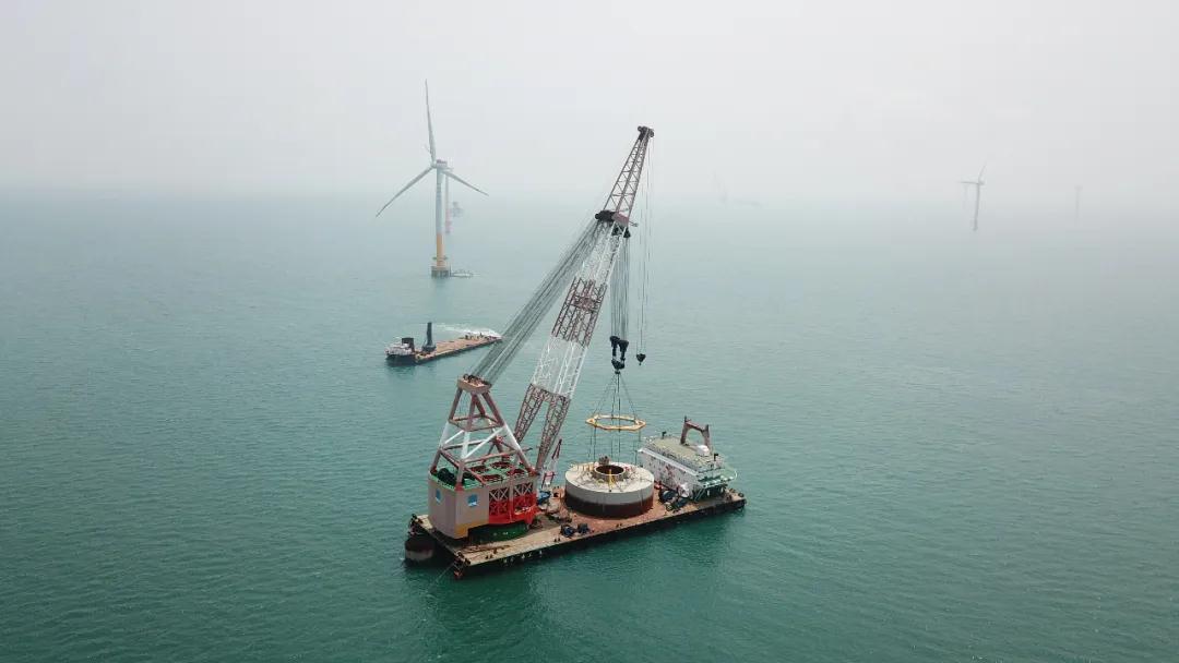 4月19日,福建投資集團莆田平海灣海上風電場二期項目12號風機機位海上負壓桶安裝成功,這是世界首座成功安裝的海上風電樁-桶復合基礎。