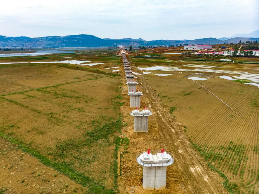 彌蒙鐵路北起云桂鐵路彌勒站,向南途經彌勒市、開遠市,止于紅河州州府蒙自市,與中越國際通道昆(明)至河(口)鐵路相銜接,彌蒙鐵路正線長約107公里,開行旅客列車速度目標值為250公里每小時,于2018年開工建設,全線新建竹園、朋普、開遠南和紅河4座車站,橋梁46座、隧道10座,橋隧比達45%以上。