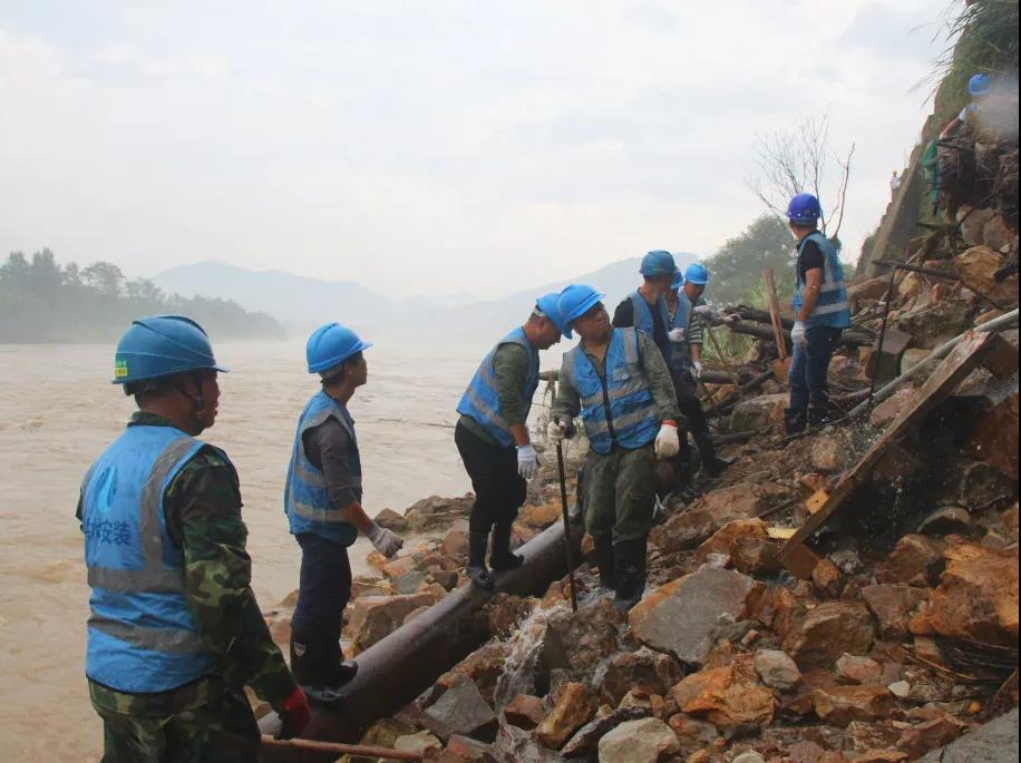 受7月9日強降雨天氣的影響,富屯溪邵武段的水位暴漲,最高的洪峰高達193.5米。邵武水務公司上下齊動員,積極投入防汛抗洪的戰斗中。當日夜間11時,洪峰徹底退去,但曬口、下沙片區仍未恢復供水,7月10日上午7時30分,公司組織十余名搶修人員,趕赴現場對該條管網進行搶修。