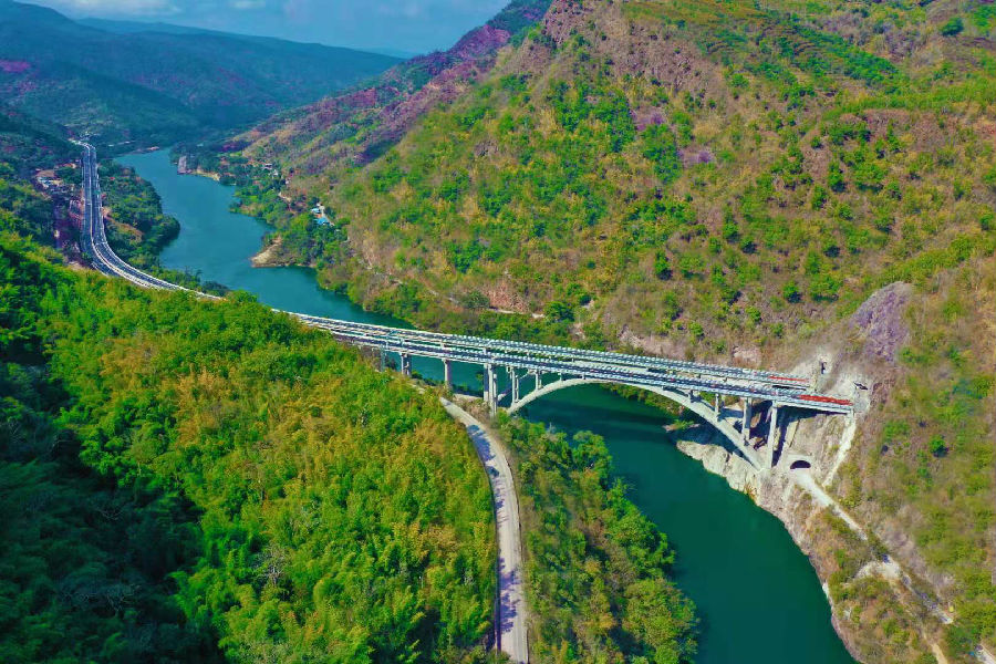 在項目建設過程中,積極將BIM技術運用在設計施工、智能分析、三維直觀檢測控制、信息化程度和管理水平等方面提升效益。運用波紋鋼拼裝式連拱明洞結構設計施工研究實現了工程經濟性與生態環保的雙重建設目標。結合沿途自然環境、地域民族文化等因素,開展環境保護及水土保持工作。采用路基改橋梁和涵洞方式優化亞洲象遷徙通道,減少對亞洲象遷徙通道的影響。運用橋面徑流收集處理系統,有效減少線路對河流及水生生物的危害等。以最小破壞植被、最大限度保護生態最快地恢復生態,踐行“綠水青山就是金山銀山”綠色發展理念。2020年以來,面對疫情防控的沖擊,項目公司黨支部以黨旗為引領,落實好上級黨委相關部署要求,積極與地方政府聯系做好聯防聯控措施,一手抓好疫情防控、一手抓好復工復產,迅速成立了3個進度管理工作組,1個征遷保障與矛盾糾紛協調組、1個資金后勤保障工作組,分段掛鉤督導三隧三橋、梁板預制等控制性工程施工進度管理,駐扎項目建設一線,緊密聯系項目工程施工點,做到“戰疫”“復工”兩不誤,保障了項目的按期建成。