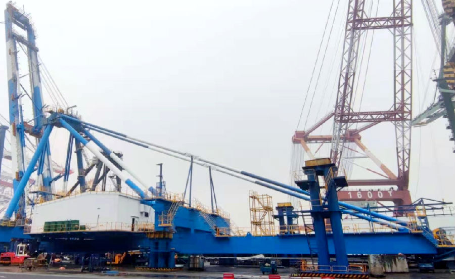 近日,上海振華重工公司長興島基地,北部灣港欽州大欖坪南作業區7-8號泊位集裝箱改造項目第一臺自動化雙小車岸橋完成門框吊裝,標志著項目岸橋由結構制造開始進入核心的總裝階段。