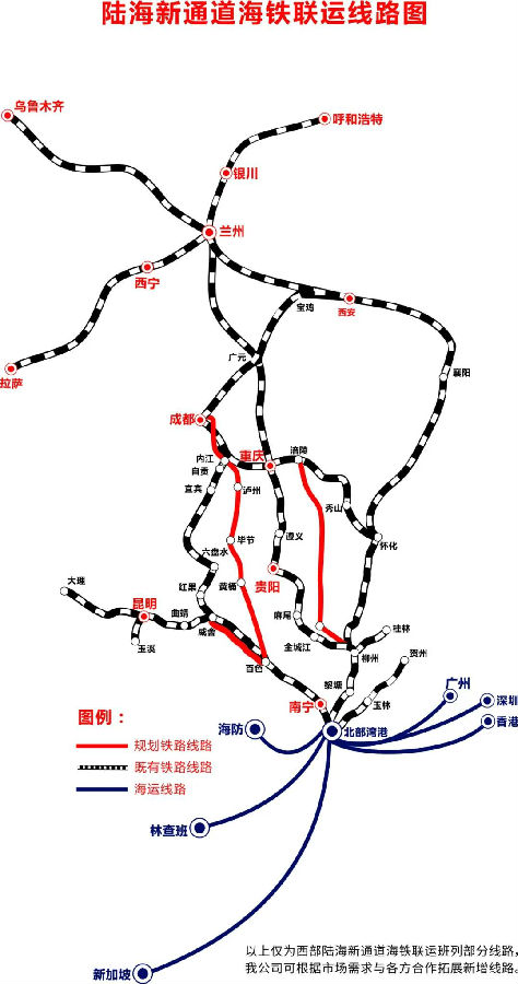 如今,西部陸海新通道的“朋友圈”越來越大、越來越廣,發展速度也越來越快。2020年,西部陸海新通道海鐵聯運班列累計到發4607列,同比增長105%,班列開行量和集裝箱發運量均實現了翻一番。2021年,站在“十四五”新的歷史起點上,四川遂寧、湖南懷化到北部灣港的鐵海聯運班列相繼首發,1月新通道累計到發班列456列,同比增長128%,實現了開門紅,西部陸海新通道正向著更深層次、更高水平的發展之路揚帆起航。
