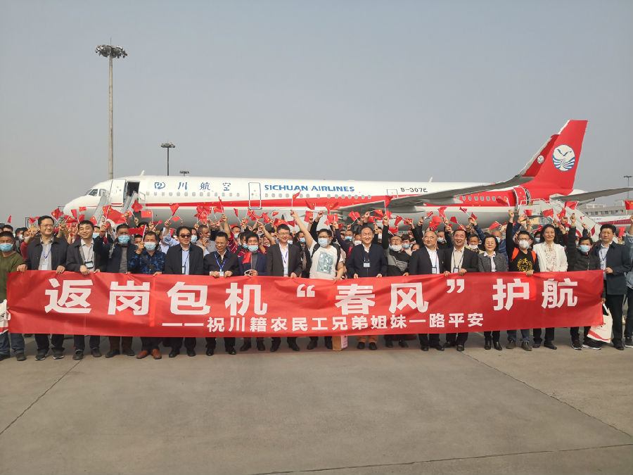 據了解,今年川農民工返崗時間比往年提前了4天。為保障農民工安全有序返崗,四川省針對川籍農民工開展“天府情緣·護你返崗”活動,實施“點對點一站式”返崗包機直達運輸服務。