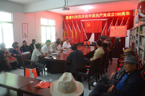 結合“七一”黨建活動,開展鄉村振興討論。在建黨百年之際,駐村干部與嘉康村黨員干部一同開展主題黨日活動,重溫入黨誓詞,述說對黨的深情,慶祝黨的百歲生日。黨員干部結合實際進行了一場“鄉村振興,如何起好步、開好局”的討論,大家表示,要積極聽黨話、感黨恩、跟黨走,黨員干部要帶好頭、做表率,持續推動黨史學習教育深入開展,推進鞏固脫貧攻堅與鄉村振興有效銜接,加快嘉康村特色產業發展,推動美麗鄉村建設。