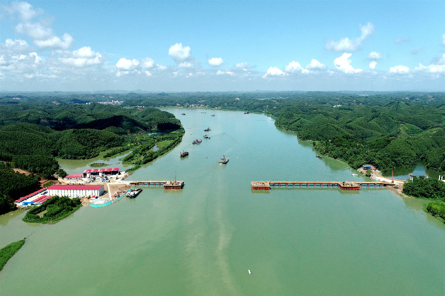 飛龍大橋位于南寧橫州市平馬鎮與新福鎮飛龍鄉交界處,由北至南跨越郁江,全橋總長940米,通航主跨185米,是S210橫縣平馬至靈山沙坪公路的關鍵控制性工程。飛龍大橋建成后,將超越日本新名神高速公路安威川大橋,成為同類型世界最大跨徑波形鋼腹板組合連續剛構橋。