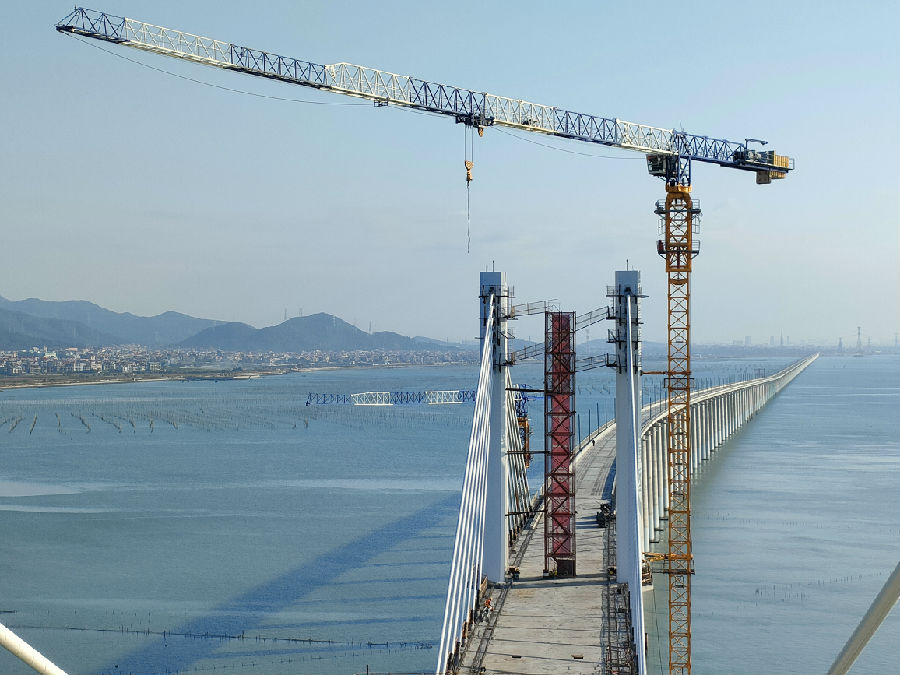 湄洲灣跨海大橋長14.7公里,海域施工長10.8公里,主橋為預應力混凝土連續剛構矮塔斜拉橋,主跨180米,跨越湄洲灣規劃3000噸級航道,設南北兩座雙柱式主塔,橋面以上塔高30米,共有28根斜拉索,施工精度高、技術難度大,是國內首座跨海高鐵矮塔斜拉橋。該橋除連續梁外全部采用40.6米箱梁設計,是福廈高鐵唯一一座40.6米箱梁橋。