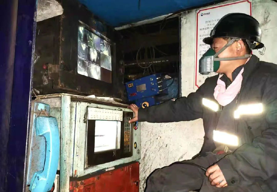 煤業公司張集礦綜采三隊職工在井下控制臺工作