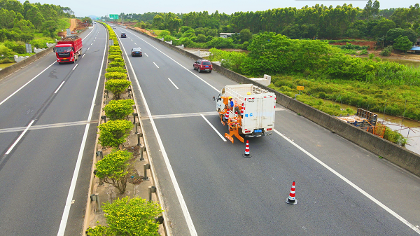為提升改擴建路段施工安全性,項目還將路錐自動收放車和安全防撞緩沖車搭配使用,保障司乘人員行車及項目施工“雙安全”。