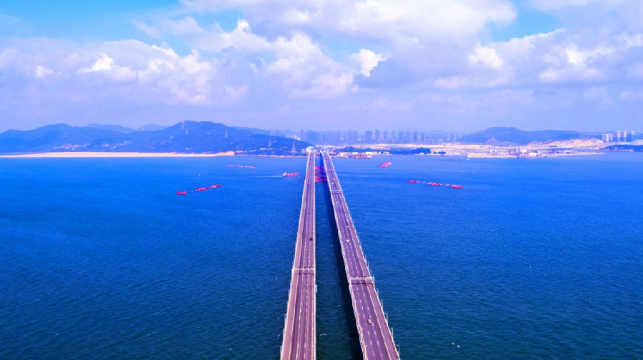 6月9日,翔安大橋A3標海中段最后一榀鋼箱梁完成吊裝。
