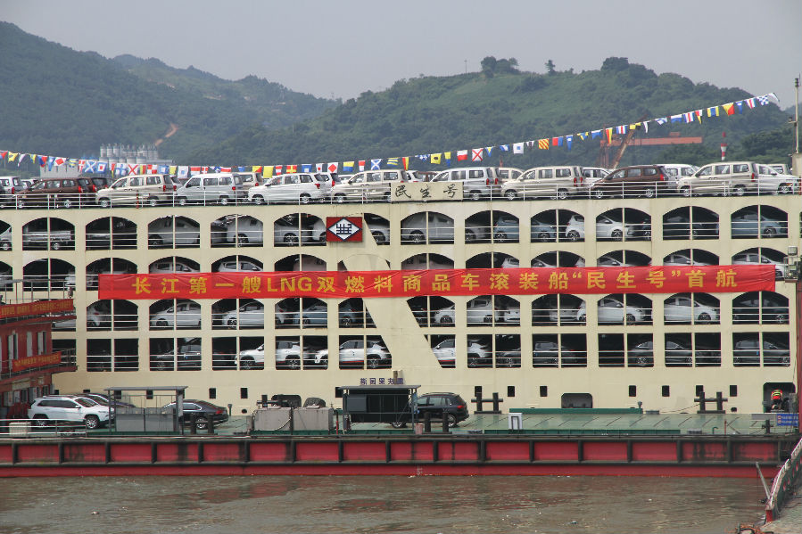 6月21日,隨著一聲汽笛長鳴,重慶市屬國有重點企業民生集團“民生號”輪滿載商品車,緩緩駛離重慶果園港滾裝碼頭,標志著長江第一艘LNG(液化天然氣)雙燃料商品汽車滾裝船“民生號”成功首航。