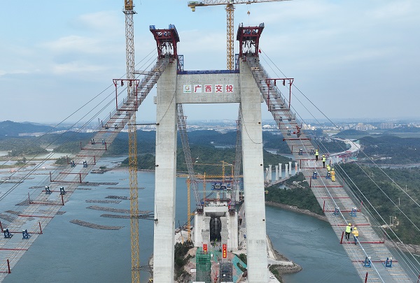 近日,由廣西交通投資集團投資建設的廣西最長跨海大橋——龍門大橋首根主纜索股順利完成架設,標志大橋正式進入主纜施工階段。