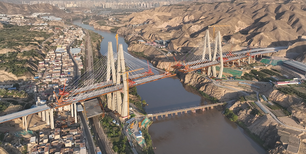 清傅公路是G312線上海至霍爾果斯公路的重要組成部分,項目全長61公里,總投資133億元,計劃于2024年6月建成通車。該項目是交通運輸部確定的第一批平安百年品質工程示范創建項目,也是清傅打造的首條“5G+智慧公路”示范項目。作為清傅公路的控制性工程,“桑園子黃河大橋”是國內八度以上地震區首座分幅連塔斜拉橋,也是目前甘肅省內規模最大,采用新技術新材料最多的斜拉橋。