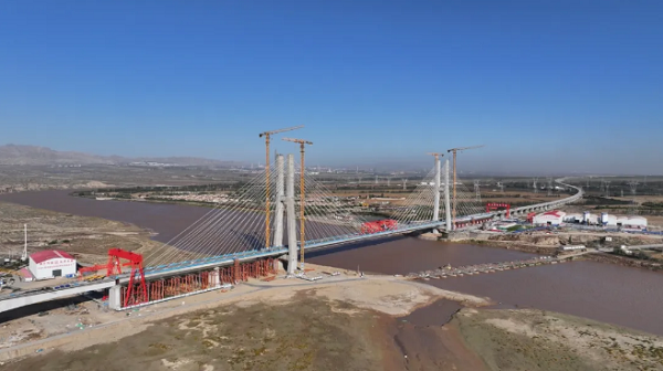 10月9日,包銀高鐵烏海黃河特大橋順利合龍貫通。烏海黃河特大橋坐落在內蒙古自治區烏海市與寧夏回族自治區石嘴山市交界處,全長2190多米,是內蒙古第一座鐵路斜拉橋,也是包銀高鐵全線橋塔最高、跨度最大的橋梁,有著包銀高鐵“黃河第一跨”美稱。烏海黃河特大橋橫跨內蒙古、寧夏兩地,它的順利合龍貫通標志著包銀高鐵全線橋梁主體工程順利完成,也為后續鋪軌奠定了堅實基礎。