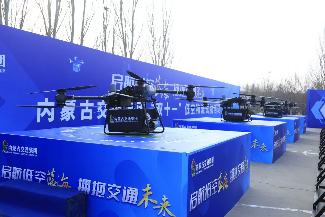11月11日,內蒙古交通集團“啟航低空藍海 擁抱交通未來”——“雙十一”低空物流試航活動在呼和浩特市舉行。