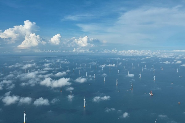 風從海上來。北部灣海上風能資源豐富,開發(fā)潛力巨大,是近年來我國海上風電開發(fā)的熱土之一。作為我國西南地區(qū)首個海上風電項目,防城港海上風電示范項目是北部灣千萬千瓦海上風電基地的開篇之作,項目包括A和F兩個場址,規(guī)劃裝機容量180萬千瓦,總投資約245億元。其中,A場址規(guī)劃建設83臺單機容量8.5兆瓦及以上風電機組,近日已完成79臺風機吊裝,其中65臺已并網(wǎng)發(fā)電,累計發(fā)電量突破5億千瓦時,相當于減排二氧化碳45萬噸,成功申領廣西首批海上風電綠色電力證書,項目經(jīng)濟效益和生態(tài)效益顯著。