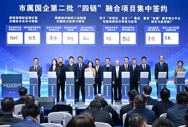 為深化“四側”高效協同,推動市屬國企“四鏈”深度融合,3月31日,重慶市國資委聯合重慶市教委、市科學技術局、市經濟信息委、市人力社保局共同舉辦市屬國企第二批“四鏈”融合項目發布暨重點項目簽約活動,現場發布100個“四鏈”融合項目。