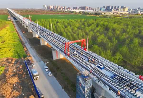 目前,阜淮鐵路全線正在緊鑼密鼓開展制架梁、無砟軌道及站后四電等工程施工,計劃今年7月開始站房施工,9月開始鋪軌,2025年站前工程全部完工,預計2026年底具備通車條件。