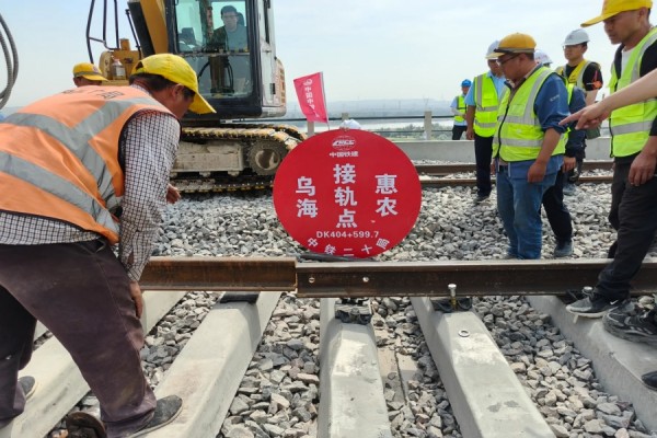 近日,在包銀高鐵烏海黃河特大橋施工現場,隨著最后一對長鋼軌穩穩落入軌槽,與已鋪長鋼軌精準對接,標志著包銀高鐵內蒙古段全線鋪軌完成,為年內開通奠定了堅實基礎。