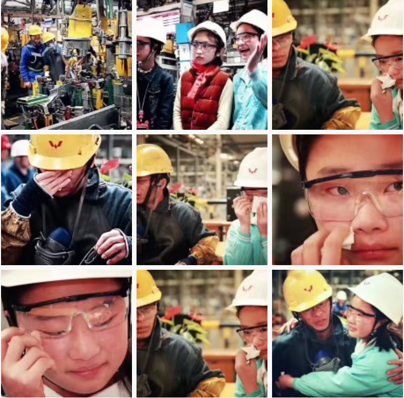 3月9日,孩子們參觀公司沖焊件廠,經過焊接線時,一位來自公司扶貧點白照村的小朋友王雨雨,目光久久停留在火光中一位焊接工人身上,一問竟是小朋友的父親王勝春。簡單的問候還沒有說上幾句,女兒的思念淚水忍不住奪眶而出,父親扭頭不忍直視那悲傷的臉龐,然而,淚水也不聽話地涌出。起先,王雨雨并不知道父親也是汽車集團的員工,自從去年因零部件產量加大連續加班,春節也沒放幾天假,這次無意得見,一別又是半年見不著面。王勝春犧牲了許多陪伴女兒的時間,在崗位上兢兢業業,多次榮獲月度優秀員工。在公司不遺余力幫助扶貧村和家庭建設發展時,來自扶貧村的不少員工也在為了企業的發展,舍小家顧大家,共創優異業績。