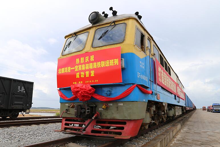 6月28日上午,“廣西北部灣港-四川宜賓”南向通道海鐵聯運班列首發儀式在廣西欽州港東站舉行,這是繼今年5月22日“宜賓—北部灣港”集裝箱班列南下北部灣港后的首趟返程列車,班列滿載50個集裝箱,主要貨物為從伊朗阿巴斯港進口的石材和從營口港經北部灣港中轉至宜賓的玉米等貨物,班列全程1305公里。宜賓與北部灣港集裝箱班列的雙向對流,進一步擴大了南向通道“朋友圈”,加快形成“一干多支”的良好發展態勢。