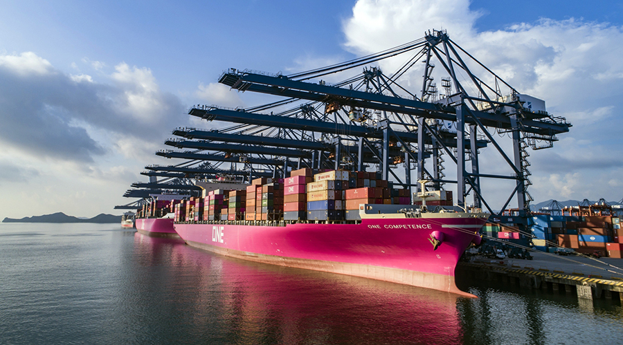 7月31日,鹽田港區迎來了日本海洋網聯船務“ONE MINATO(第一海港)”號首次掛靠?!暗谝缓8邸碧栭L366米,寬51.2米,屬于日本海洋網聯船務訂造的系列14000標箱集裝箱船。紫紅色的“第一海港”號投入使用后,將成為其核心船舶之一。