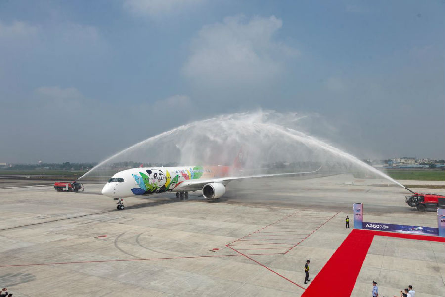 川航首架空客A350飛機抵蓉 助飛“熊貓之路”