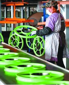 浙江武義經濟開發區的一家企業,員工在生產線上趕制共享單車輪轂。新華社發