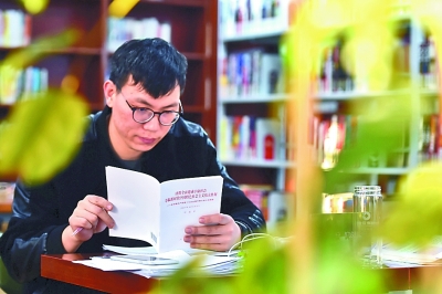 讀者在揚州“24小時城市書房”閱讀十九大報告。新華社發