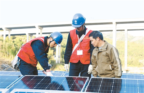 國網福建電力員工幫助貧困戶檢查光伏發電設備。 本報記者 薛志偉攝