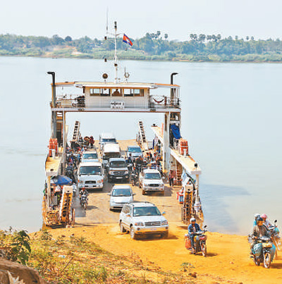 格羅奇馬縣輪渡碼頭是一個岸邊土坡。在簡易的售票處旁,人流車流混雜在一起等候渡船。記者在這里遇到了坐在土坡陰涼處的韋索樂夫婦,來自斯棟德朗縣的他們剛參加完侄子的婚禮,準備乘坐輪渡回到對岸的家中。輪渡沒有固定的時刻表,一兩個小時會有一趟,兩人已經在土坡上坐了半個多小時。“盼望‘夢想之橋’早日建成,以后我們來走親戚就可以騎摩托車,還能省下幾百柬埔寨瑞爾(1元人民幣約合600瑞爾)的船票?!?/p>