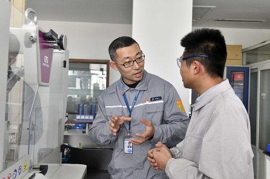 在煙臺萬華化學集團中央研究院,工作人員在做聚丙烯材料擺錘沖擊試驗。(資料照片)