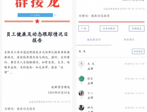 “非常時刻,作為黨員干部,就要有非常之擔當”浙江省交通投資集團杭新景管理處黨總支書記魯建偉自疫情發生以來,擔負起第一責任人的職責,第一時間召集骨干力量緊急部署,成立防控工作領導小組,做到早部署、早謀劃,年前就通過醫藥公司、勞保定點和網購配齊配足口罩、消毒水、紅外線體溫計,做好物資儲備。春節期間,“保暢”“抗疫”雙重任務十分繁重,黨總支書記便帶著黨員骨干逐條研究記錄表單,整理合并同類項,優化填報流程,統一疫情記錄規范,提升了工作效率也減輕基層負擔。微信群變成了“指揮部”,防控通知、疫情摸排、責任分工、強調落實、監督檢查.......24小時在線已是常態。