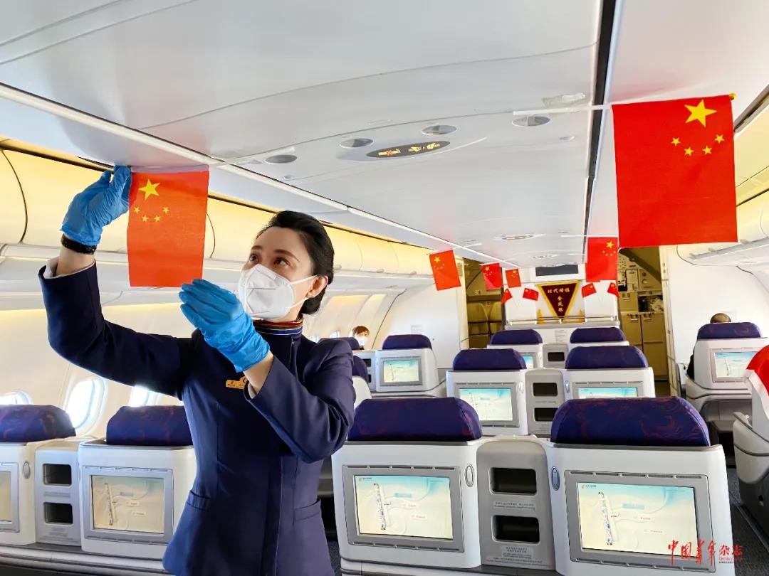 國航青年在疫情期間精心布置客艙