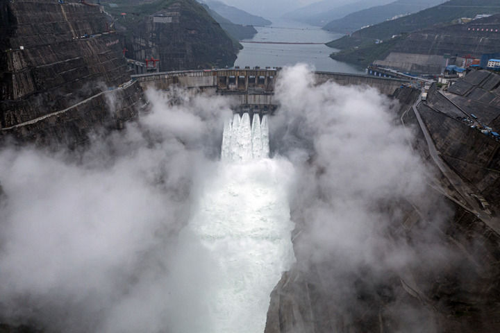 投產發電中的白鶴灘水電站(無人機照片)。新華社記者 江文耀 攝