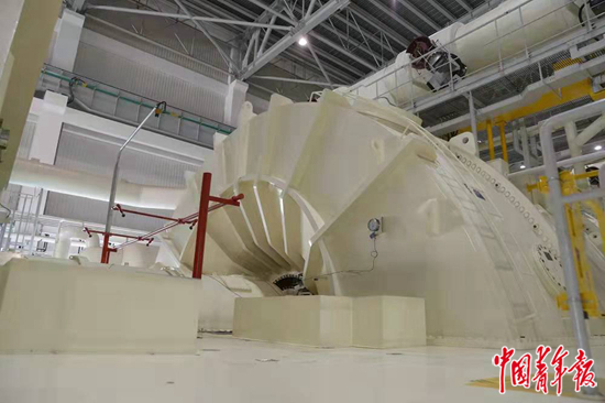 海陽核電站內的渦輪發電機。核能產生高溫高壓的水蒸氣,推動渦輪發電機發電。