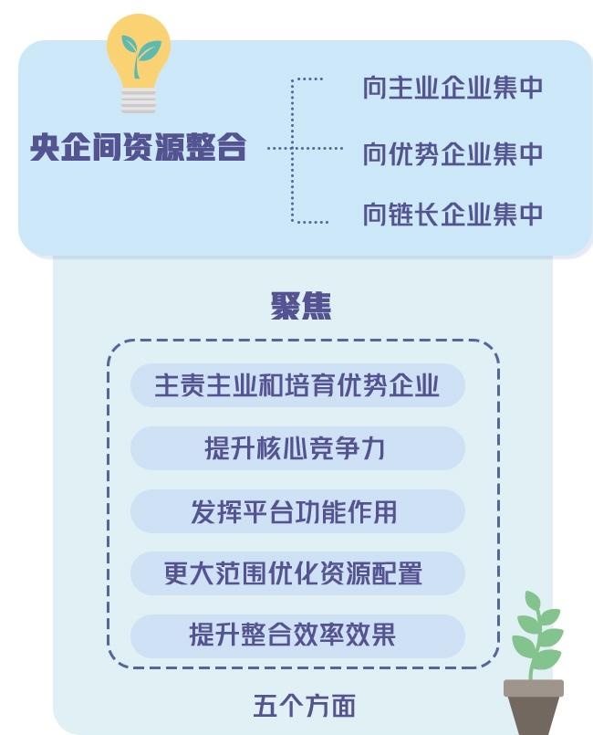 按照部署,央企深化專業化整合,要聚焦主責主業和培育優勢企業、提升核心競爭力、發揮平臺功能作用、更大范圍優化資源配置、提升整合效率效果五個方面。