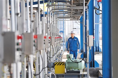 近年來,中國石油蘭州石化公司加大科技創新力度,大力增產高附加值產品,自主研發的丁腈橡膠、煉油催化劑等產能已躋身世界前列,創新驅動和提質增效能力顯著增強。圖為該公司橡膠運行部丁腈二區域工藝技術負責人在進行生產裝置日常巡檢。