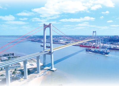 馬普托大橋橋長超3000米、主跨長680米、主梁通航凈高超過60米,是目前非洲第一大跨徑懸索橋。大橋橫跨馬普托灣,連接海灣北岸的馬普托城區和南岸的卡騰貝地區。盡管坐擁印度洋上的明珠——黃金角旅游勝地,曾經的卡騰貝地區受馬普托海灣這一天然屏障阻隔,交通不便、發展嚴重滯后,經濟總量僅占整個首都地區的一小部分。