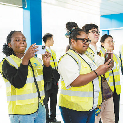 2023“一帶一路”媒體合作論壇聯合采訪團成員參觀中國建筑長沙機場T3航站樓項目。