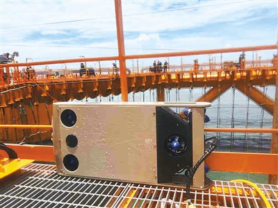 在平臺上,記者看見兩名頭戴安全帽的工作人員拽住一根長繩,將一臺白色機器從海里緩緩撈出?!斑@是自動巡檢機器人,可以在海下檢查網衣破損、清潔情況,如果發現養殖網需要修整,把清洗機器人放入養殖區域內就能自動完成清理?!绷譄稣f。