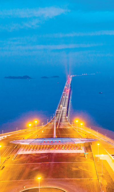 本次驗收交付的主體工程集橋、島、隧于一體,包含九洲、江海和青州三座通航斜拉橋,約20公里的非通航孔橋,6.7公里的海底隧道,以及連接橋梁和隧道的東西兩座人工島,共約29.6公里,總投資約480億元。主體工程于2011年1月開工,經過大橋建設者7年的砥礪奮戰,于2017年12月31日基本建成,全線亮燈。