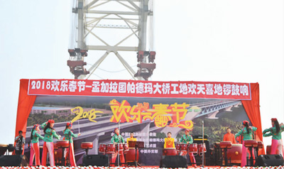二月三日,“歡樂春節”慰問演出活動在孟加拉國帕德瑪大橋工地隆重上演。(圖片來源:中鐵大橋局集團第五工程有限公司官網)