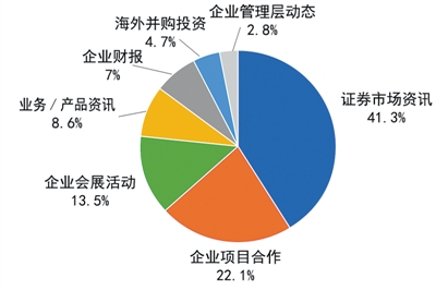 《報告》研究發現,2018年上半年外媒關于中央企業的報道主要集中在證券市場資訊、企業項目合作、會展活動等方面。其中,2018年上半年國際環境發生很大變化,全球貿易格局突變,企業海外投資并購、項目合作及實施情況較受外媒關注。