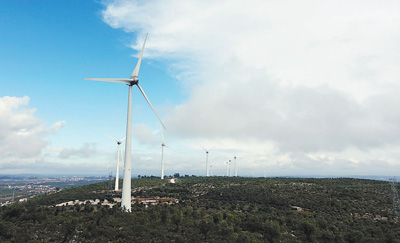 葡萄牙電力公司與中國長江三峽集團成為長期戰略伙伴,合作建設了拜羅風電站。圖為拜羅風電站的風力發電機組。馮雪珺攝