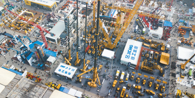 2018年上海寶馬工程機械展徐工展區。(張肖笛攝)